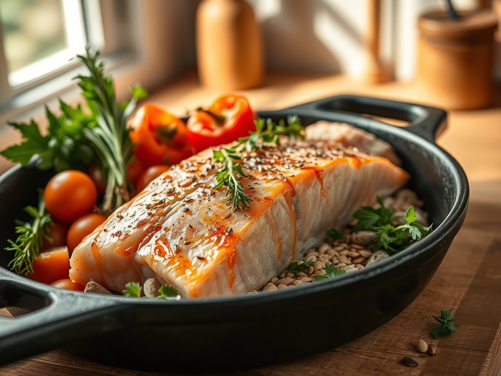 The magic lies in the iron. Unlike flimsy non-stick pans that lose heat the moment food touches them, cast iron acts as a thermal battery. It stores massive amounts of energy and releases it evenly, ensuring that your fish undergoes the Maillard reaction rather than just steaming in its own juices. We are going for that deep, mahogany brown that shatters under a fork.