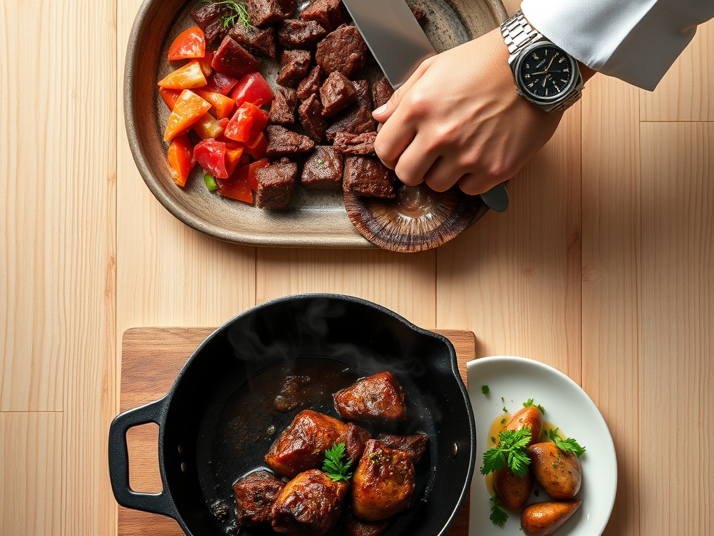 Begin by patting your beef dry with paper towels. Moisture is the enemy of the crust. Heat your heavy-bottomed skillet until it is shimmering, then sear the meat in small batches using tongs.
